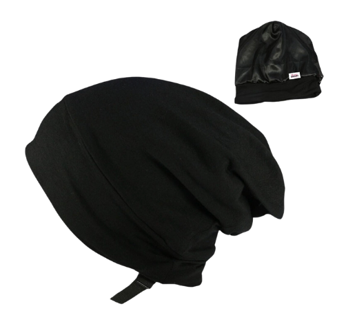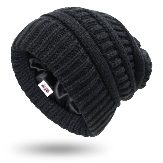 Stretchy Knit Satin Lined Beanie Bonnet with Puff
